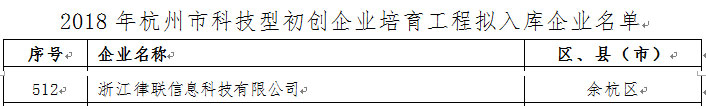 根據(jù)《杭州市科技型初創(chuàng)企業(yè)培育工程實(shí)施意見(2018-2020)》(杭科高〔2018〕4號)的規(guī)定,經(jīng)各區(qū)、縣(市)科技局、杭州經(jīng)開區(qū)、大江東科技局初審和推薦,杭州市科學(xué)技術(shù)委員會進(jìn)行形式審查、專家評審和行政決策等程序,擬決定將浙江律聯(lián)信息科技有限公司等712家企業(yè)作為2018年杭州市科技型初創(chuàng)企業(yè)培育工程入庫企業(yè)。