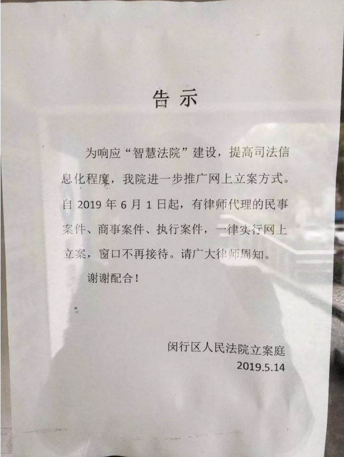(閔行人民法院推廣“智慧法院”告示)